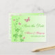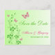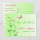 Cette carte postale pour annoncer la date de mariage avec des fleurs rose chaud et vert printemps comporte des papillons et des fleurs roses et verts SIMULÉS qui correspondent à l'invitation de mariage présentée ci-dessous. Si vous avez besoin d'autres articles assortis dans ce design, veuillez envoyer votre demande par courriel à niteowlstudio@gmail.com.