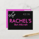 Créée sur mesure et personnalisée avec le nom de la jeune fille et la date de l'événement. La carte postale "Réservez la date" présente une impression rose et argentée vibrante sur fond noir brillant au recto et une impression noire sur fond rose vif au verso.