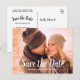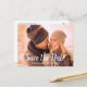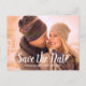 Cartes postales élégantes et modernes pour sauver la date avec une écriture blanche chic sur le devant. Ajoutez facilement votre photo et votre texte personnalisés sur le devant, ainsi que vos détails de sauvegarde de date personnalisés au verso.