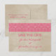 Carte postale 'Save the Date' en dentelle rustique simple et élégante avec un fond texturé de style vintage et une bordure de motif de dentelle délicate et douce en magenta. Facile à personnaliser, il suffit d'ajouter vos informations de mariage. Cliquez sur "Personnaliser" pour trouver plus d'options de personnalisation.