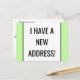 Cette conception de carte postale de changement d'adresse minimaliste présente le message "J'AI UNE NOUVELLE ADRESSE !" sur le devant, et un message personnalisable au verso. Des cartes postales comme celle-ci pourraient être utilisées pour informer les amis et la famille d'une nouvelle adresse, d'un nouveau numéro de téléphone et d'autres informations pertinentes.