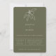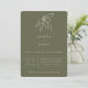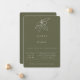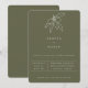 Dessin en ligne de branche d'olive rustique toscane en blanc avec une typographie moderne pour carton d'invitation de mariage. La teinte de fond, représentée ici en vert mousse, est configurable.