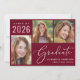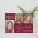 Simple Class of 2025 burgundy red graduation faire-part avec un collage photo de 3 images et "Graduate" dans un élégant script blanc. Ajoutez le nom de la diplômée, l'année de classe et l'école dans la typographie blanche moderne.