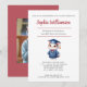 Un mignon chat porte un casquette et une robe et est vu sur le devant de ce faire-part de célébration. Les détails de la fête sont inclus sur le devant et une photo du jeune diplômé de la maternelle est à l'arrière.