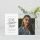 "L'aventure commence ainsi" script annonce de graduation photo noir et blanc minimaliste. Personnalisé avec votre année de graduation, nom, nom de l'école et photo. © Kimbellished, LLC