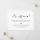 C'est officiel ! Une carte moderne minimaliste en noir et blanc pour annoncer votre mariage ou l'élévation à vos amis et votre famille.