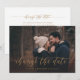 Lorsque vous devez reporter votre mariage, informez vos invités avec cette jolie carte de changement de date avec photo et place pour tous les détails (recto et verso). Caractérisé par une écriture calligraphique élégante et une mise en page soignée avec votre photo. Toutes les couleurs sont éditable.