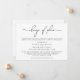 Si des circonstances imprévues vous obligent à réduire la taille de votre mariage, vous pouvez informer vos invités qu'ils ne pourront pas y assister avec ce faire-part de mariage minimaliste et élégant en noir et blanc. "Changement de plans" est écrit dans un style manuscrit tendance et vous pouvez facilement personnaliser le message de réduction de mariage avec plus de détails et ajouter des événements de mariage virtuels et des célébrations futures.