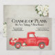 Une façon humoristique de faire savoir à vos invités de mariage qu'il y a eu un changement dans les plans de mariage. Camion rouge vintage orné de fleurs de magnolia et du mot mariage sur la porte latérale. Votre message texte pour informer la famille et les amis que vous avez un nouvel itinéraire prévu. Ajoutez le site web du mariage et d'autres détails. Le verso présente de belles et élégantes fleurs de magnolia blanches. Bonne chance avec vos nouveaux plans.