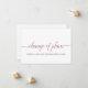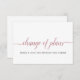 Parfois, les mariages doivent être reportés. Demandez à vos invités de changer votre date de mariage avec ce design simple et élégant avec les mots "changement de plan" dans la typographie rose moderne en écriture rose or sur le devant avec votre message et les noms sur le dos.