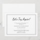 Annoncez à votre famille et à vos amis un changement de date de mariage avec cette carte simple et élégante. Le design présente un fond blanc épuré avec une bordure noire et le message « Essayons à nouveau ! » Le texte personnalisable vous permet d'ajouter les noms des mariés ainsi que la nouvelle date et le lieu du mariage.