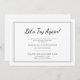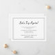 Annoncez à votre famille et à vos amis un changement de date de mariage avec cette carte simple et élégante. Le design présente un fond blanc propre avec une bordure noire et le message "Essayons encore !" Le texte personnalisable vous permet d'ajouter les noms des mariés et la nouvelle date et le lieu du mariage.