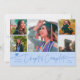 Modern and simple graduation announcement photo card featuring 5 photos on the front and 1 on the back. The hand written script text says "Chapter Complete." Add the graduate's name, information, and message to personalize this card. Icy blue color.