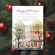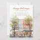 Cette annonce de déménagement pour les fêtes de Noël présente la phrase "Joyeuses Fêtes depuis notre nouvelle maison" avec une belle rue de ville à l'aquarelle avec un grand sapin de Noël. L'annonce est parfaite pour être envoyée aux amis et à la famille pendant la période des fêtes pour leur faire savoir votre nouvelle adresse. Le recto de l'annonce présente la phrase et la scène de rue enneigée de la ville à l'aquarelle, et comprend votre nouvelle adresse et vos coordonnées. La conception générale est festive et charmante, et l'annonce est sûre de mettre un sourire sur le visage de vos proches.