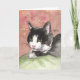 Cette carte de note comportant un portrait de chat d'Ava Gardner, un beau félin noir et blanc est peinte dans l'aquarelle avec des tons de vert et de mauve. Elle était l'un des nombreux chats disponibles pour l'adoption de l'aide banni de chat. La peinture originale a été donnée à l'organisation à but non lucratif dans les espoirs qu'elle encouragerait son adoption, qu'elle a ! Ava ronronne gentiment dans sa nouvelle maison.