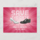 Annoncez votre super-mariage avec cette carte postale glamour "Save the Date" en rose fuchsia, mettant en vedette des chaussures de mariage marié et marié sur une piste de danse et un texte brillant. Personnalisez-le avec votre propre texte sur les deux côtés ou customisez-le davantage si vous souhaitez ajuster la disposition. Conception disponible également sur les invitations avec enveloppes assorties :