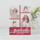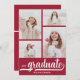 Ajoutez vos quatre photos préférées au devant de ces invitations à la fête de remise des diplômes mettant en vedette les diplômés et la classe de en lettrage chic sur un arrière - plan rouge crimson. PLUS de dessins et de couleurs réalisés dans notre magasin, y compris les invitations, enregistrer les cartes de date et les cartes postales.