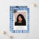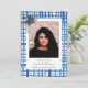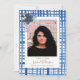 Un magnifique faire-part de remise de diplômes pour fêter une étape spéciale ! Ce design comprend un arrière - plan bleu aquarelle plaid aux accents de fleurs bleu et or et un espace réservé pour votre photo.