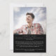 Ce chic message noir et la carte de faire-part de remise de diplômes photo est la parfaite simple faire-part d'études secondaires ou collégiales. Le design sobre et sombre présente une typographie minimaliste classique en noir et blanc, dans un style élégant et sophistiqué. Personnalisable dans n'importe quelle couleur. Personnalisez l'avant de la carte avec une photo, le nom de vos diplômés et l'année. Ajoutez une photo supplémentaire et un message de faire-part plus long au dos de la carte.