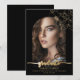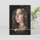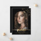 Carte de annonce de graduation moderne en noir et or, avec une photo en arche, feuillage de pochoir or chic et une fleur. La carte est livrée avec un texte de modèle qui est facilement modifiable, les styles de police peuvent être modifiés en cliquant sur le lien personnaliser davantage après la personnalisation.