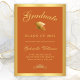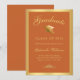 Envoyez à votre famille et à vos amis une faire-part chic de graduation avec un arrière - plan orange classique avec de la calligraphie de fuax or et un casquette de couleur or bordé d'un cadre doré. Personnalisez avec vos détails de graduation. Conçu par Susan Coffey.