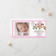 Chouette rose douce Faire-part de naissance bébé avec une adorable chouette rose assise sur une branche d'arbre sur un arrière - plan blanc avec une bordure rose. Customisez avec l'image de votre nouveau-né et l'information sur la naissance et vous êtes tous prêts à partir. Objets correspondants disponibles dans notre boutique.