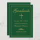 Envoyez à votre famille et à vos amis une élégante faire-part de graduation chrétienne avec un arrière - plan vert avec de la calligraphie en faux or et traversez bordé par une mince ossature en or. Personnalisez avec vos détails de graduation. Conçu par Susan Coffey.