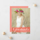 Annoncez votre diplôme à votre famille et à vos amis avec cette carte de graduation personnalisable. Il présente une calligraphie blanche moderne sur une aquarelle de corail. Personnalisez cette carte de faire-part de graduation en calligraphie en ajoutant votre photo, votre nom et votre nom d'école. Cette carte de faire-part de remise de diplômes photo est parfaite pour les baccalauréat ou collégial.