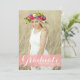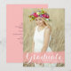 Annoncez votre diplôme à votre famille et à vos amis avec cette carte de graduation personnalisable. Il présente une calligraphie blanche moderne sur un éclat d'aquarelle rose. Personnalisez cette carte de faire-part de graduation en calligraphie en ajoutant votre photo, votre nom et votre nom d'école. Cette carte de faire-part de remise de diplômes photo est parfaite pour les baccalauréat ou collégial.