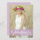 Annoncez votre diplôme à votre famille et à vos amis avec cette carte de graduation personnalisable. Il présente une calligraphie blanche moderne sur un éclat d'aquarelle violette. Personnalisez cette carte de faire-part de graduation en calligraphie en ajoutant votre photo, votre nom et votre nom d'école. Cette carte de faire-part de remise de diplômes photo est parfaite pour les baccalauréat ou collégial.