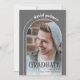 Célébrez les réalisations de la Classe de 2025 avec notre faire-part photo gris arc GRADUATE. Ce design élégant présente une arche, ornée de la photo du diplômé. Le côté gauche présente une ligne courbée gracieuse qui monte et tourne à droite, affichant le nom du diplômé dans une police frappante. Contre un arrière - plan gris, ce faire-part respire le raffinement et l'accomplissement. Retournez-le pour trouver une autre photo chère et tous les détails nécessaires pour la fête, assurant un événement mémorable et joyeux pour tous.