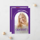 Classe de 2025 GRADUATE arch violet photo Faire-part. Conçu avec élégance, ce faire-part met en valeur le mot "GRADUATE" dans une police sophistiquée, en orientant l'attention sur le point central de l'événement. La pièce maîtresse présente une photo captivante du diplômé en forme d'arc, tandis qu'une courbe élégante sur le côté gauche mène gracieusement à droite, affichant le nom du diplômé sur un fond violet vibrant. Retournez-le, et vous découvrirez une autre photo et des détails supplémentaires, créant un souvenir précieux pour commémorer cette étape importante.