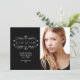 Ce design présente l'année de votre graduation à l'intérieur d'un motif tourbillon blanc orné sur un arrière - plan coloré. Votre photo est affichée à gauche. Les détails de la fête de graduation peuvent être facilement ajoutés au verso de la carte.