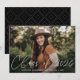 Célébrez la diplômée avec notre classe moderne de 2025 faire-part. Le faire-part de graduation affiche la photo du diplômé avec "Classe de 2025" dans une superposition de script de calligraphie moderne blanche. Personnalisez le devant de la faire-part moderne de graduation en ajoutant le nom du diplômé, le nom de l'école et l'année de graduation. La faire-part s'inverse pour présenter un motif géométrique pointillé noir et blanc tendance. Le design est parfait pour les diplômés du secondaire et du collège.
