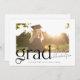 Cette faire-part moderne et tendance de graduation dispose d'une palette de couleurs noir et blanc et d'une grande photo de votre diplômé. Un " Grad " audacieux et élégant orne l'avant. Le dos de la carte est simple et vous permet d'en savoir plus sur votre diplômé et son plan pour l'avenir. Ou, vous pouvez le changer en une invitation de remise de diplômes. Vous pouvez trouver d'autres versions de ce design dans mon magasin Zazzle.