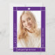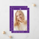Classe moderne violet de 2025 graduation photo Faire-part. L'arrière - plan violet plein de vitalité est complété par une bordure blanche élégante qui encadre élégamment la photo de votre diplômé, ce qui en fait le point central de la faire-part. Le nom du diplômé et d'autres informations importantes sont soigneusement positionnés à l'extérieur du cadre, en s'assurant qu'ils se démarquent. Retournez la faire-part, et vous découvrirez une autre photo avec tous les détails essentiels de la graduation, créant un souvenir mémorable pour cette étape spéciale de votre vie.
