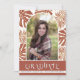 Classe feuille tropicale en terre cuite moderne de 2023 arche avec diplôme de photo faire-part. Il présente le texte "GRADUATE", une photo dans un arc et des feuilles tropicaux en terre cuite et blanc.