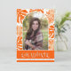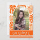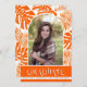 Classe feuille tropicale orange moderne de 2024 arche avec faire-part de graduation photo. Il comporte le texte "GRADUATE", une photo dans une arche et des feuilles tropicaux en orange et blanc.
