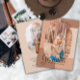 Conception de bloc de couleur rétro dans des tons de terre cuite de désert assourdis avec des photos de rectangle oblong incurvé sur l'avant et l'arrière et le mot "Diplômé" en texte manuscrit (non modifiable) sur le devant sous la photo. Conception composite par Holiday Hearts Designs (droits réservés) avec des photos de modèle de placeholder via Unsplash.