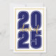 Un faire-part de graduation verticale intemporelle et polyvalente avec l'année "2025" affichée en gros caractères gras, avec "classe de" élégamment écrit en script à travers le milieu. Le design utilise actuellement un jeu de couleurs bleu et jaune or, mais offre la flexibilité de changer l'année, "classe de" et les couleurs de cadre pour correspondre aux couleurs de l'école. Vous pouvez même ajuster la couleur arrière - plan pour une touche personnalisée. Le dos reflète la disposition avant avec un simple cadre de ligne de couleur, offrant un espace propre et poli pour les photos et un message sincère des parents. La couleur du cadre est personnalisable, ce qui facilite la coordination avec les couleurs de l'école ou votre thème préféré. Parfait pour célébrer cette grande réussite avec un style sophistiqué et classique.