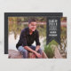 La bannière de regard texturisée noire et blanche classique de drapeau est audacieuse et à la mode - avec piquer blanc autour des bords et de la typographie audacieuse célébrant votre diplômé. La grande photo sur l'avant fait une invitation saisissante à la famille et aux amis. Montré avec le texte témoin sur l'installation arrière comme exemple pour une invitation de fête de remise des diplômes ou peut facilement être modifié pour devenir un faire-part seulement.