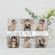 Célébrez votre graduation avec ce faire-part de collage 12 photos élégant et minimaliste. L'avant comporte six photos carrés avec "Graduate" en gras noir moderne en lettrage sur un arrière - plan blanc immaculé, tandis que l'arrière offre six emplacements photo supplémentaires et de l'espace pour le texte personnalisé comme les plans futurs, les détails de la fête de remise de diplômes, ou un message personnel. Personnalisez le faire-part avec le nom du diplômé, l'école et l'année de diplôme pour une touche unique. Parfait pour les diplômés du secondaire et du collège, ce faire-part polyvalent et élégant est une façon mémorable de partager votre réussite avec votre famille et vos amis.