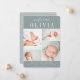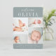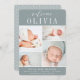 Les annonces de naissance élégantes comprennent quatre photos de nouveau-nés disposées dans une grille de montage sur un arrière - plan vert sauge poussiéreux. "Welcome [name]" apparaît en haut dans le script de calligraphie chic et le lettrage de bloc classique. Personnalisez avec le nom complet du bébé, les statistiques de naissance et une signature de famille en bas. Un design simple et propre et neutre pour annoncer l'arrivée de votre petit.