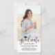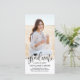 Partagez la joie d'une remise de diplômes de lycée ou d'université avec une élégante combinaison de cartes d'annonce et d'invitation comportant deux photos et un code QR personnalisé. Avec cette carte téléchargeable, vous pouvez annoncer la réussite du diplômé et fournir des photos et des détails supplémentaires via un emplacement en ligne de votre choix, tel qu'un site web, une page de médias sociaux, une annonce numérique, une invitation à une fête ou un album photo. Selon la configuration, le lien peut fournir un espace où les amis et la famille peuvent publier un message en ligne, offrir un cadeau via une application de paiement, ou consulter plus d'informations, telles que les détails de la fête et la RSVP. Le design moderne en noir et blanc présente une toque de diplômé, une calligraphie script tendance, une typographie classique élégante et deux photos de votre choix, telles que des photos de fin d'études ou des images de la cérémonie de remise des diplômes. Les images et le texte sur ce modèle sont faciles à personnaliser et les couleurs sont simples à modifier à l'aide de l'outil de conception Zazzle. Cette chic carte de remise de diplômes verticale télécharge