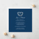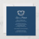 Une carte d'annulation de mariage avec un monogramme de cœur décoratif argenté sur fond blanc et bleu de Prusse foncé. Idéal pour informer vos invités de l'annulation d'un mariage ou d'un événement, ou pour reporter en raison d'une maladie ou de circonstances imprévues. La conception de la couronne de cœur décorative encadre vos initiales de monogramme. En effet argenté, il est écrit "mariage annulé, l'amour est patient". D'autres options de couleur et articles assortis sont disponibles. Création originale de Sarah Trett pour www.mylittleedenweddings.com