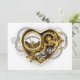 Coeur steampunk mécanique, volumétrique, avec manomètre, acier et or sur arrière - plan blanc. Style Steampunk.
