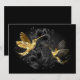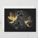 Colibris de bijoux en noir et or sur arrière - plan gris décoré de plantes. Bijoux. Oiseau doré. Oiseau d'or.