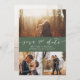 Choisissez les meilleures photos de votre séance de prise de vue de fiançailles ou vos photos préférées des deux pour cette parfaite carte de sauvegarde de la date. Les mots enregistrer la date sont écrits à la main pour donner une touche personnelle à la carte postale. Modifiez cette carte de mariage avec vos informations et personnalisez-la pour d'autres options de police et de couleur de police.