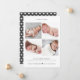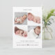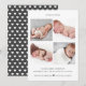 Carte de naissance moderne et élégante avec 4 photos sur une grille et une typographie grise moderne.