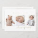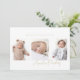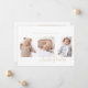 moderne simple 4 photo collage script bébé carte de Faire-part bébé. Cette carte élégante comprend un collage photo de 3 photos sur le devant et 1 sur le dos avec texte et arrière - plan personnalisés.